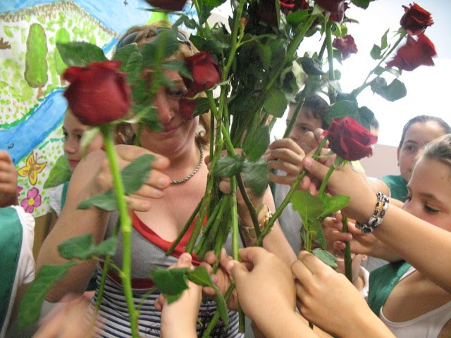 Na recepção ao 1.º ano, no Centro Escolar da Lixa, os alunos do 4.º ano fizeram as honras da casa e, intitularam-se madrinhas e padrinhos para acolherem os "caloirinhos". Nesta sequência, uma aluna do 4.º ano da turma 10, a Maria Beatriz, fez anos e, a sua afilhada, também Beatriz, da sala 10 do 1.º ano, fez questão de lhe dar os parabéns com um beijo e ainda com a oferta de uma rosa. Os laços de ternura têm vindo a manifestar-se desta e doutras formas revelando que estes alunos, foram bem acolhidos e integrados no seio escolar. Fica o registo deste ternurento momento!